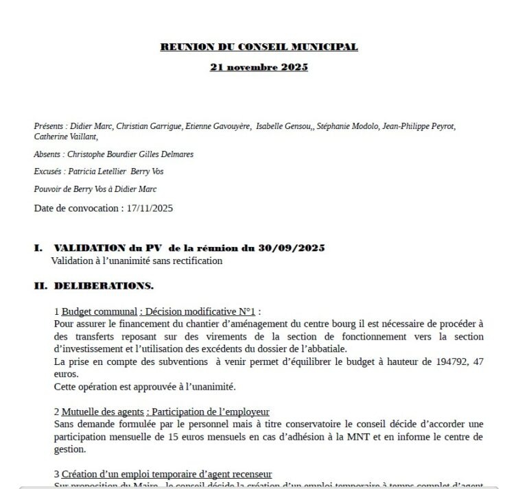 Philippe Peyrot (second adjoint), Isabelle Gensou, Etienne Gavouyère, Christian Garrigue, Patricia Letellier, Catherine Vaillant, Monsieur le maire Didier Marc, Christophe Bourdier, Stéphanie Modolo (première adjointe), Berry Vos, Gilles Delmarès.